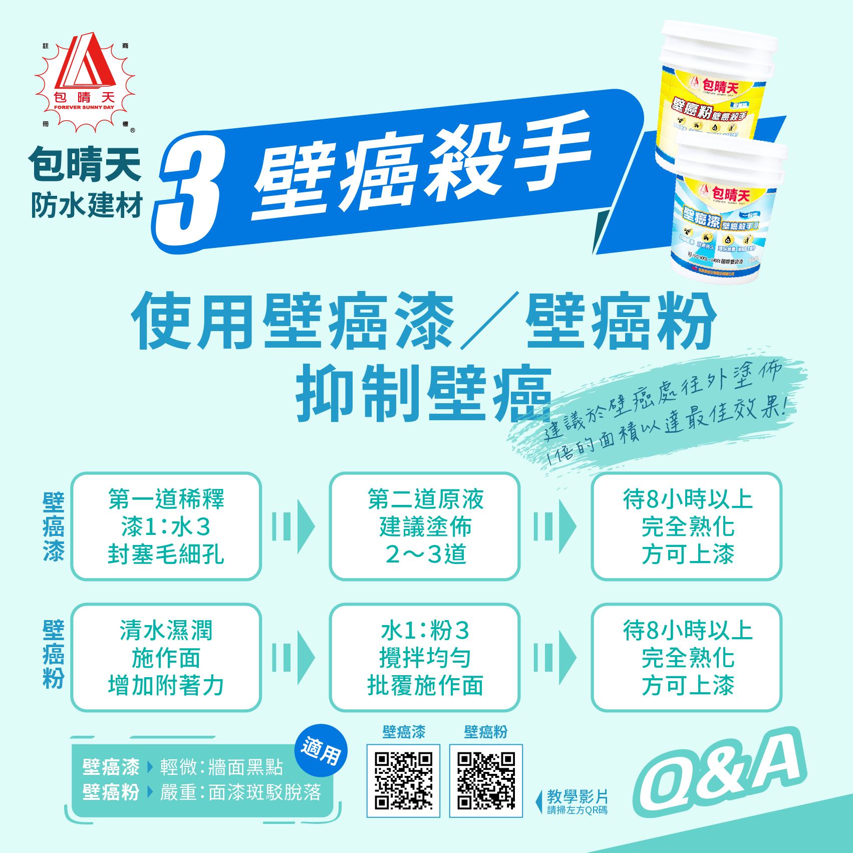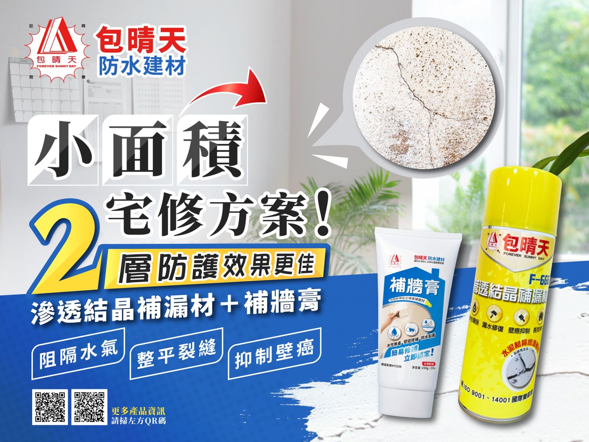 颱風季來臨,家中有壁癌漏水狀況需及時改善,想使用包晴天產品...