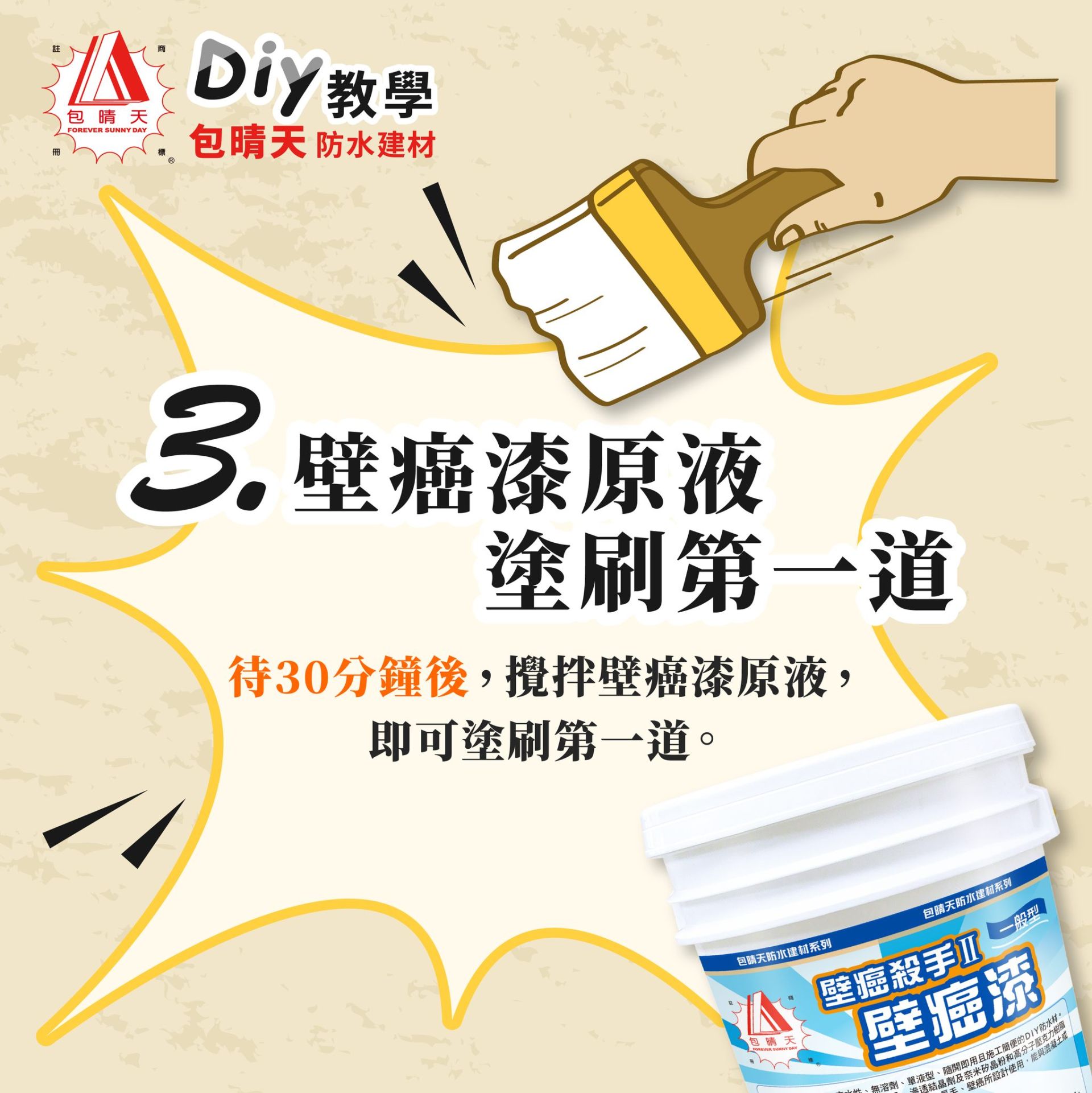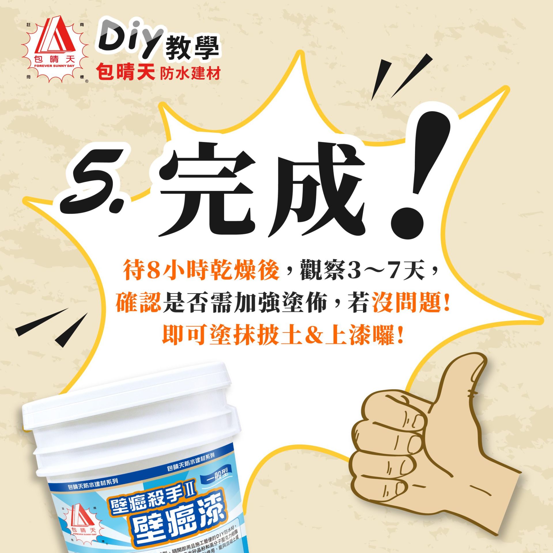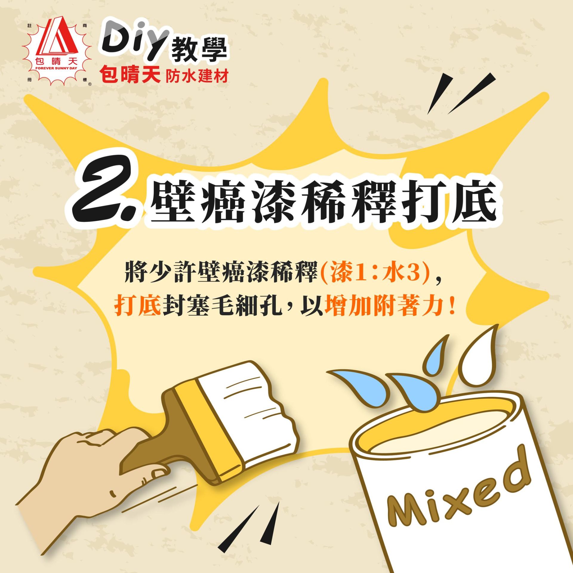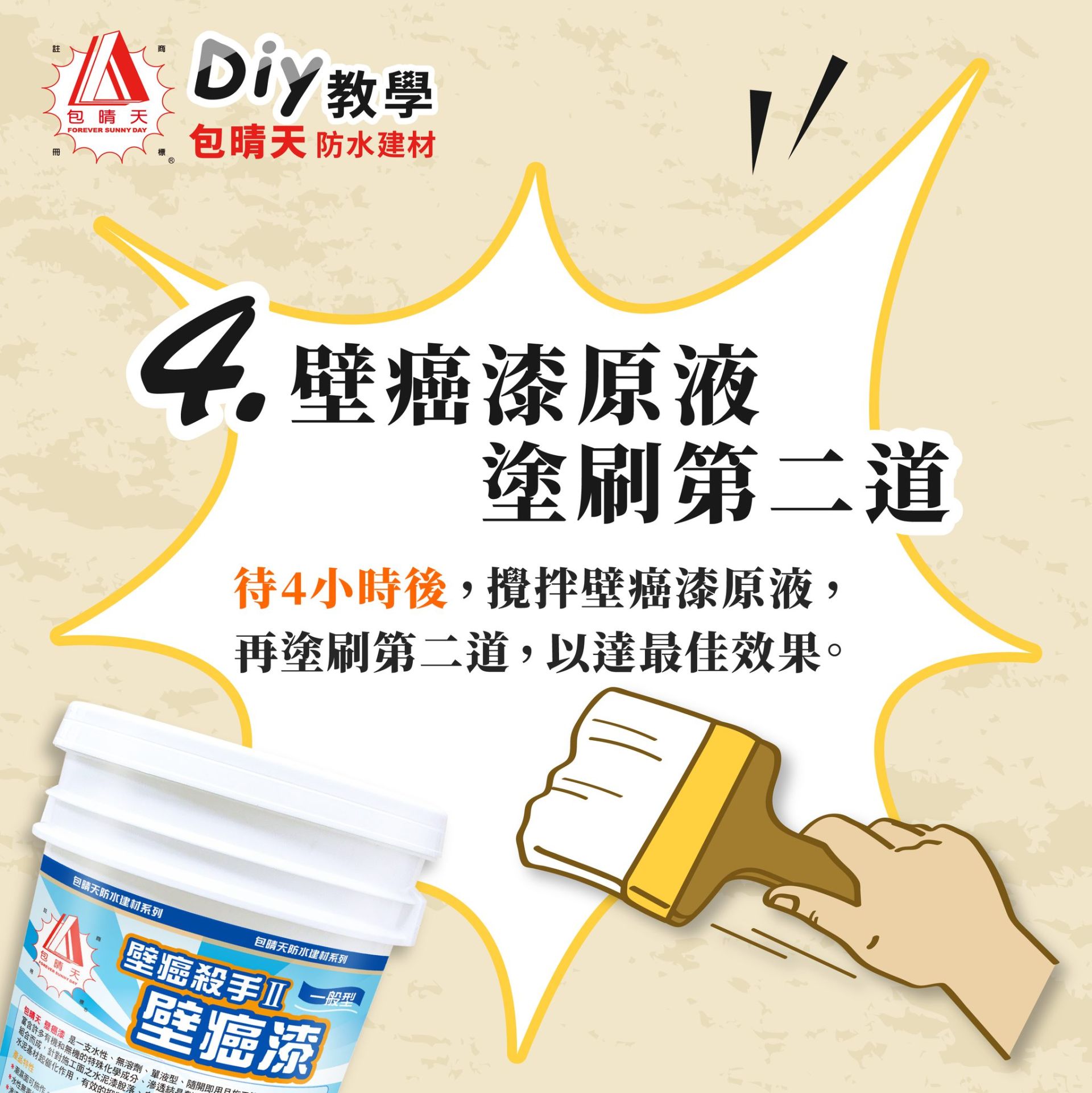 ※漏水要先從外牆(塗F-006防水矽膠)或漏水源頭處理好(抓漏),再從室內施做,才能有效抑制壁癌喔!