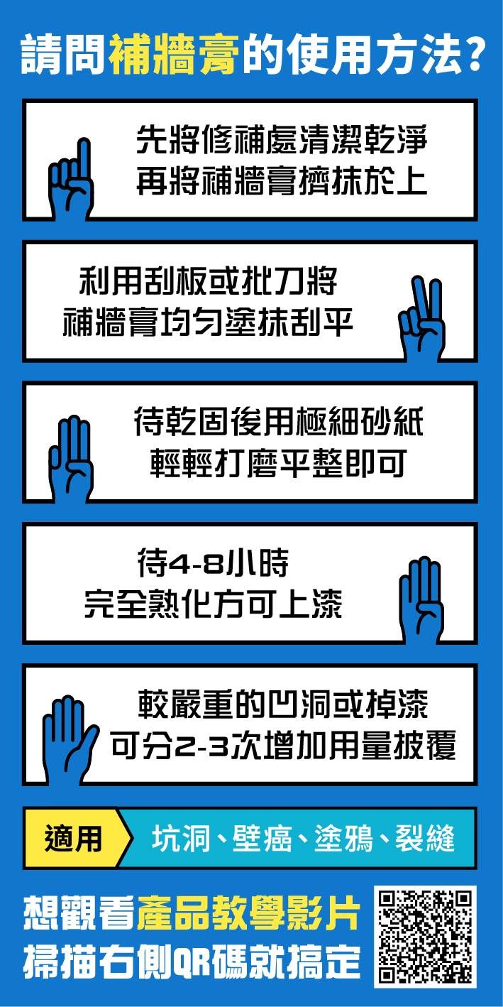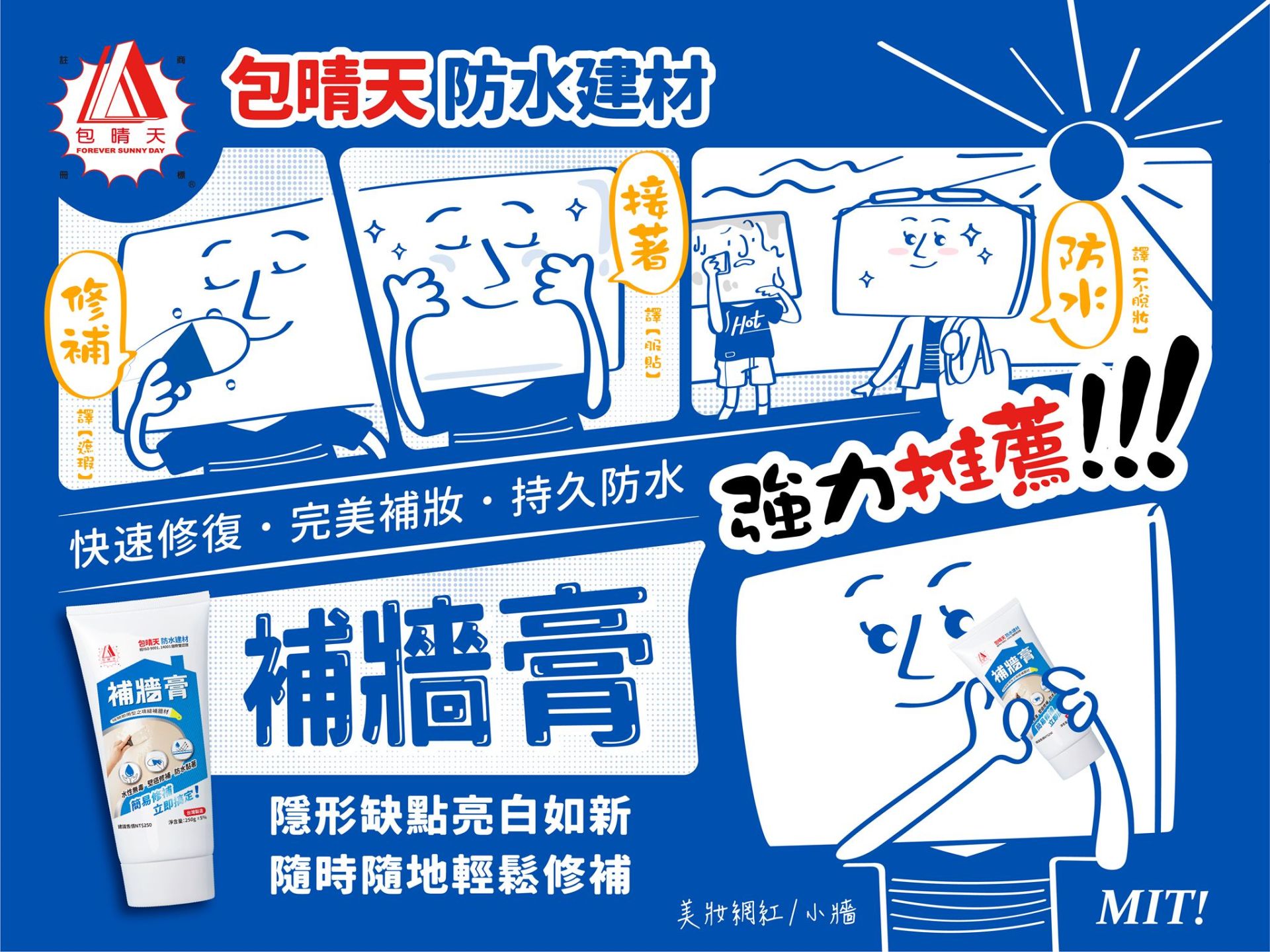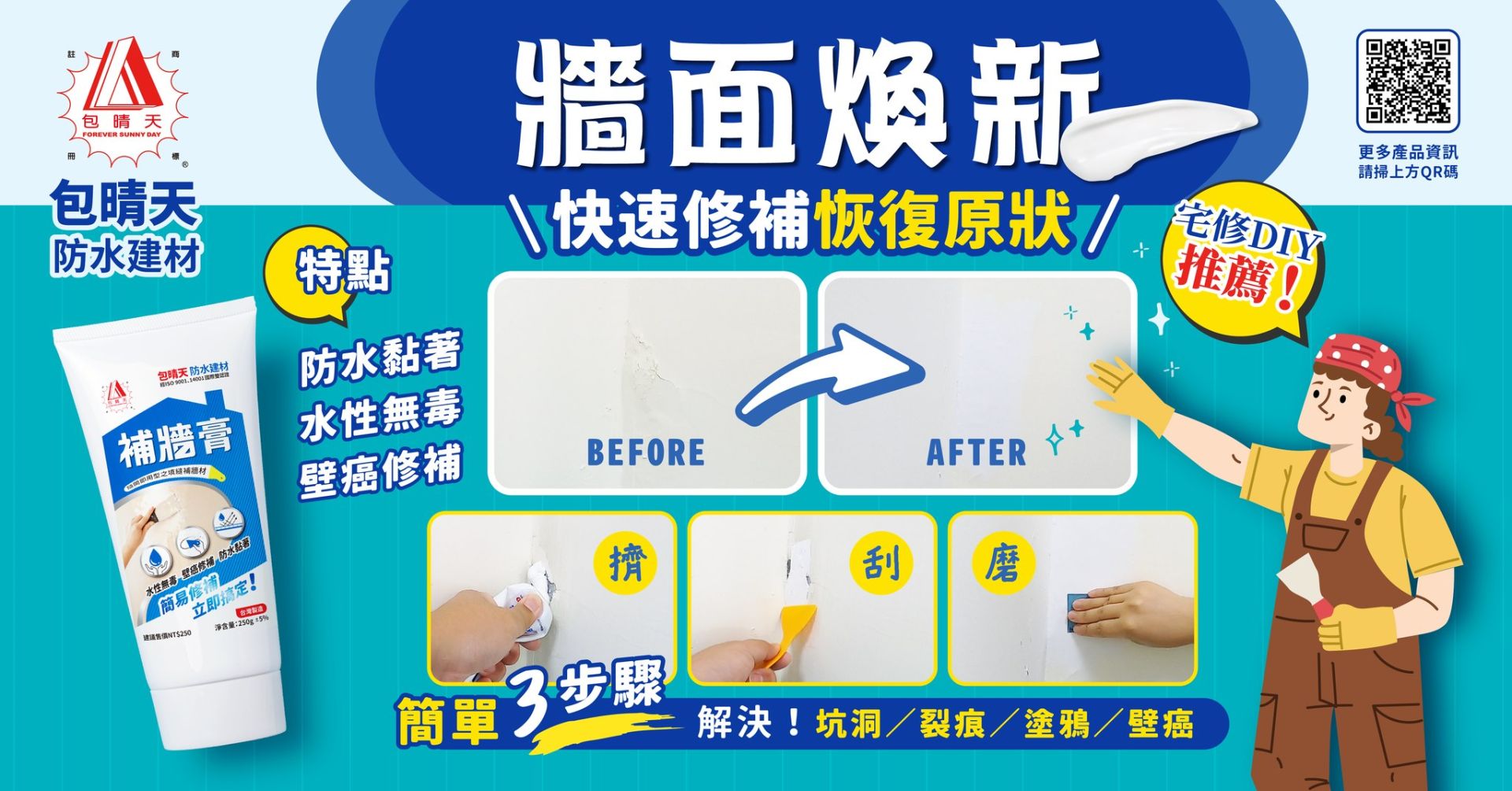 少量使用不浪費,來支包晴天補牆膏!簡易三步驟 擠➡刮➡磨
