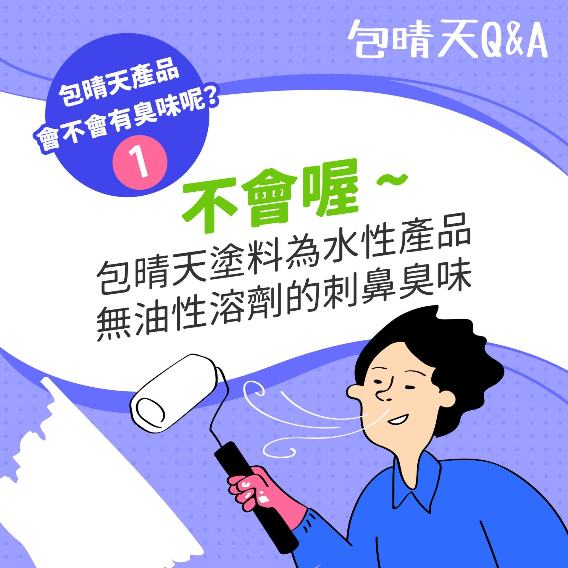 Q1. 請問包晴天產品會不會有臭味呢?A:不會唷!